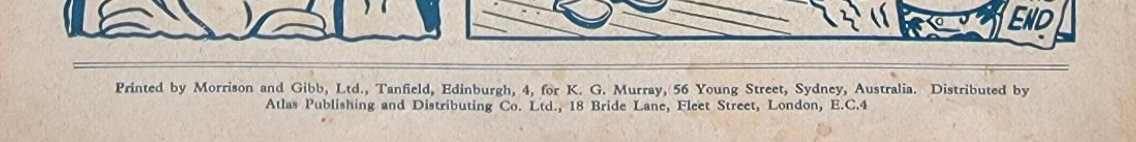 Printed by Morrison and Gibb, Ltd., Tanfield, Edinburgh, 4, for K. G. Murray, 56 Young Street, Sydney, Australia. Atlas Publishing and Distributing Co. Ltd., 18 Bride Lane, Fleet Street, London, E.C.4