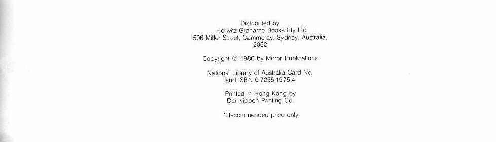 Distributed by Horwitz Grahame Books Pty Ltd 508 Miller Street, Cammeray, Sydney, Australia, 2062. Copyright © 1986 by Mirror Publications. National Library of Australia Card No. and ISBN 0 7255 1975 4. Printed in Hong Kong by Dai Nippon Printing Co.