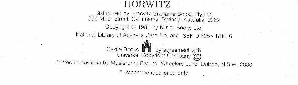 Horwitz. Distributed by Horwitz Grahame Books Pty Ltd. 506 Miller Street, Cammeray, Sydney, Australia, 2062. Coppyright © 1984 by Mirror Books Ltd. National Library of Australia Card No. and ISBN 0 7255 1814 6. Castle Books by agreement with Universal Copyright Company ©. Printed in Australia by Masterprint Pty Ltd Wheelers Lane, Dubbo, N.S.W. 2830.