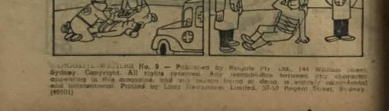 Silhouette Western No. 9.--Published by Reigate Pty. Ltd., 144 William Street, Sydney. Copyright. All rights reserved. Any resemblance between any character appearing in the magazine, and any person living or dead, is entirely coincidental and unintentional Printed by Land Newspapers Limited, 57-59 Regent Street, Sydney. (49991 [?])
