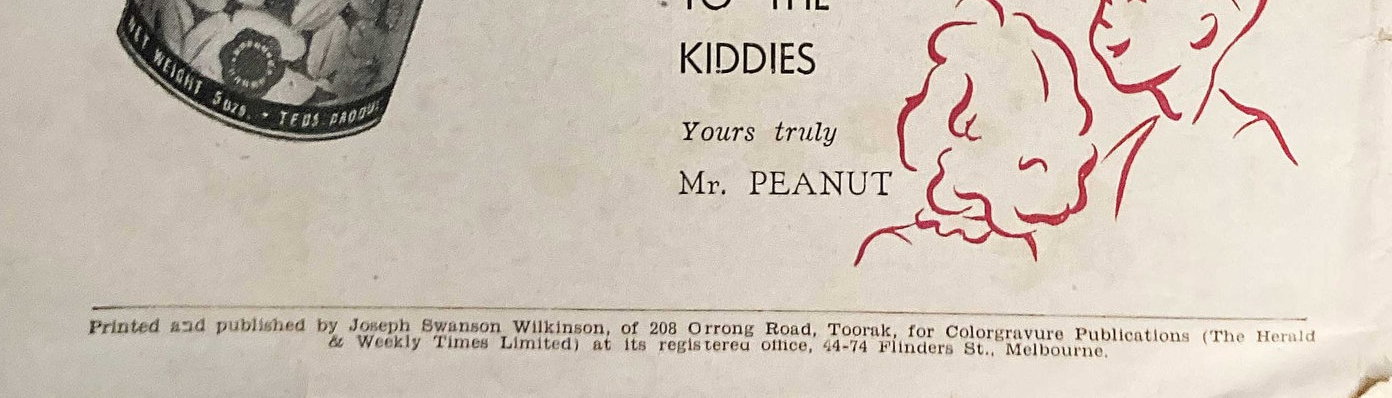 Printed and published by Joseph Swanson Wilkinson, of 208 Orrong Road, Toorak, for Colorgravure Publications (The Herald & Weekly Times Limited) at its registered office, 44-74 Flinders St., Melbourne.