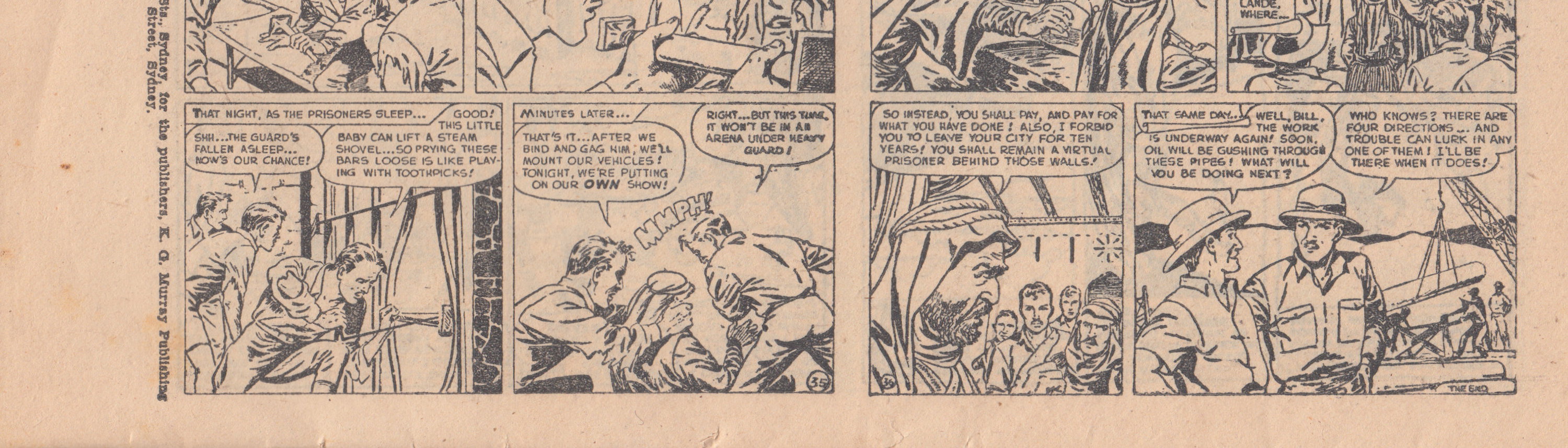 [Cover] Printed by Kenmure Press Pty. Ltd., for Colour Comics Pty. Ltd., Sydney, proprietors, and produced by the K. G. Murray Publishing Company Pty. Ltd., 56 Young Street, Sydney. Gordon and Gotch (Australasia) Ltd., distributors for Australia and New Zealand. Atlas Publishing and Distributing Co. Ltd., 16 Bride Lane, Fleet Street, London, E.C.4., distributors for the British Isles.