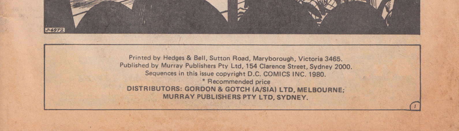 Printed by Hedges & Bell, Sutton Road, Maryborough, Victoria 3465. Published by Murray Publishers Pty Ltd, 154 Clarence Street, Sydney 2000. Sequencs in this issue copyright D.C. Comics Inc. 1980. Distributors: Gordon & Gotch (A/sia) Ltd, Melbourne; Murray Publishers Pty Ltd, Sydney.