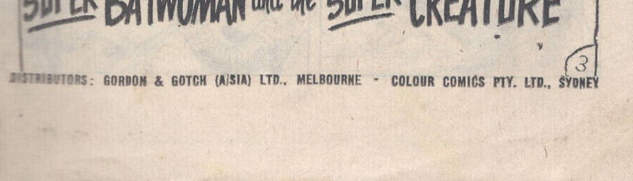 Printed by Kenmure Press Pty Ltd, cnr Derby and Wetherill Streets, Nth Lidcombe, for the Proprietors Colour Comics Pty Ltd, Sydney, and produced by The K. G. Murray Publishing Company Pty Ltd, 142 Clarence Street, Sydney. Gordon & Gotch (A'sia) Ltd, distributors for Australia and New Zealand. Sequences in this issue Copyright National Periodical Publications Inc.