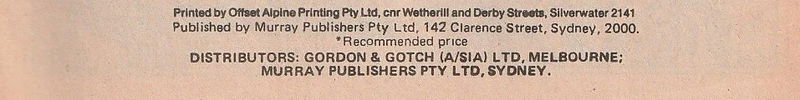 Published by Murray Publishers Pty. Ltd., 142 Clarence Street, Sydney, 2000.