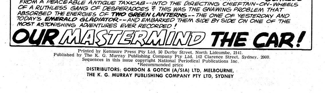 Printed by Kenmure Press Pty Ltd, 50 Derby Street, North Lidcombe, 2141. Published by The K. G. Murray Publisher Company Pty Ltd, 142 Clarence Street, Sydney, 2000 Sequences in this issue Copyright National Periodical Publications Inc. Distributors: Gordon & Gotch (A/sia) Ltd, Melbourne; The K. G. Murray Publishing Company Pty Ltd, Sydney