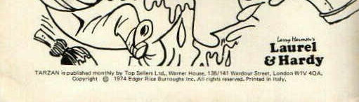 Tarzan is published monthly by Top Sellers Ltd., Warner House, 135/141 Wardour Street, London W1V 4QA. Copyright © 1974 Edgar Rice Burroughs Inc. All rights reserved. Printed in Italy.