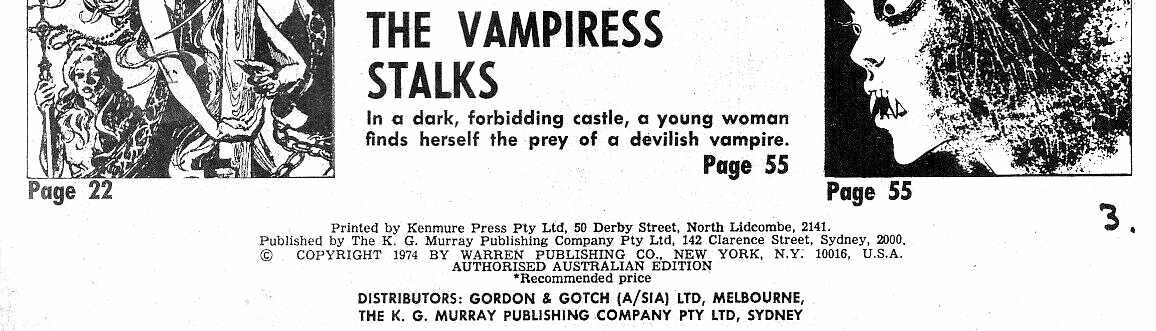 Printed by Kenmure Press Pty Ltd, 50 Derby Street, North Lidcombe, 2141. Published by The K. G. Murray Publishing Company Pty Ltd, 142 Clarence Street, Sydney, 2000. © copyright 1974 by Warren Publishing Co., New York, N.Y. 10016, U.S.A. Authorised Australian Edition. Distributors: Gordon & Gotch (A/sia) Ltd, Melbourne, The K. G. Murray Publishing Company Pty Ltd, Sydney;.