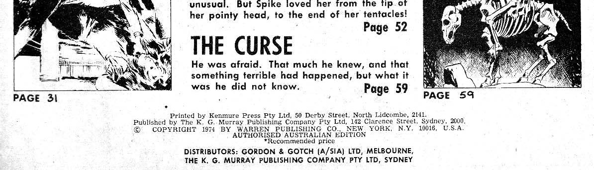 Printed by Kenmure Press Pty Ltd, 50 Derby Street, North Lidcombe, 2141. Published by The K. G. Murray Publishing Company Pty Ltd, 142 Clarence street, Sydney, 2000. © Copyright 1974 by Warren Publishing Co., New York, N.Y. 10016, U.S.A. Authorised Australian Edition. Distributors: Gordon & Gotch (A/sia) Ltd, Melbourne, The K. G. Murray Publishing Company Pty Ltd, Sydney.