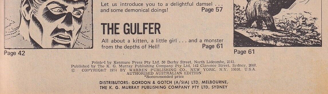 Printed by Kenmure Press Pty Ltd, 50 Derby Street, North Lidcombe, 2141. Published by The K. G. Murray Publishing Company Pty Ltd, 142 Clarence Street, Sydney, 2000. © Copyright 1974 by Warren Publishing Co., New York, N.Y. 10016, U.S.A. Authorised Australian Edition. Distributors: Gordon & Gotch (A/sia) Ltd, Melbourne, The K. G. Murray Publishing Company Pty Ltd, Sydney.