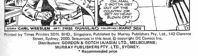 Printed by Times Printers SDN, BHD., Singapore. Published by Murray Publishers Pty. Ltd., 142 Clarence Street, Sydney, 2000. Sequences in this issue © copyright DC Comics Inc. Distributors: Gordon & Gotch (A/asia) Ltd., Melbourne; Murray Publishers Pty. Ltd., Sydney.