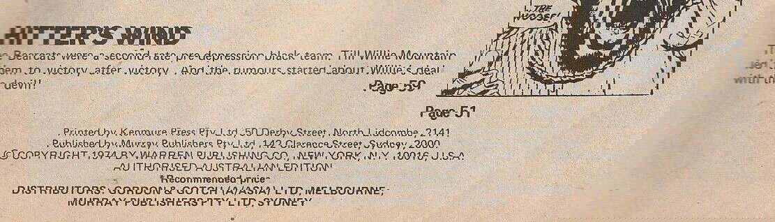 Printed by Kenmure Press Pty Ltd, 50 Derby Street, North Lidcombe, 2141. Published by Murray Publishers Pty Ltd, 142 Clarence Street, Sydney, 2000. © Copyright 1974 by Warren Publishing Co. New york. N.Y. 10016, U.S.A. Auhorised Australian Edition. Distributors: Gordon & Gotch (A/asia) Ltd. Melbourne, Murray Publishers Pty Ltd, Sydney.
