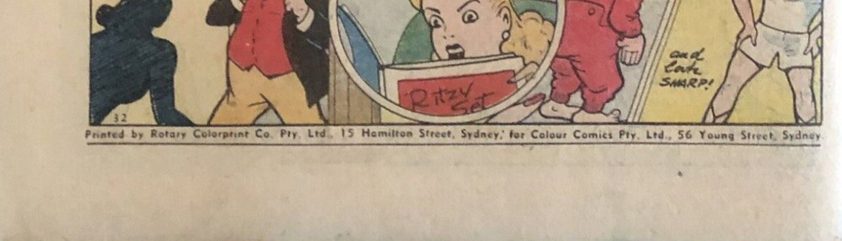Printed by Rotary Colorprint Co. Pty. Ltd. 15 Hamilton Street, Sydney, for Colour Comics Pty. Ltd. 56 Young Street Sydney.