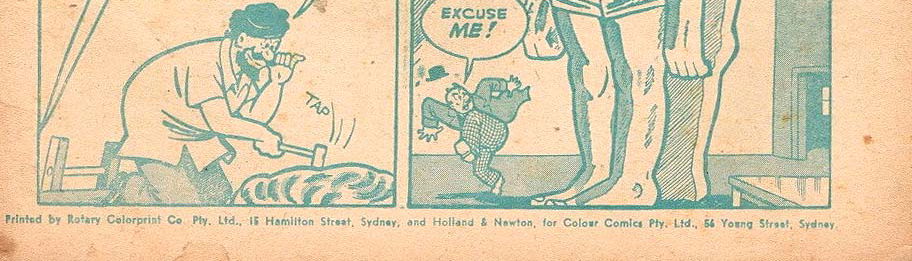 Printed by Rotary Color Print Co. Pty. Ltd., 15 Hamilton Street, Sydney and Holland & Newton, for Color Comics Pty. Ltd., 56 Young Street, Sydney.