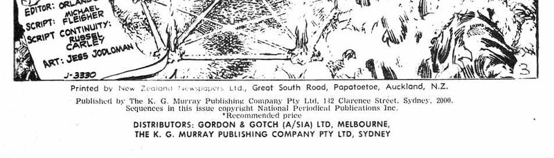 Printed by New Zealand Newspapers Ltd., Great South Road, Papatoetoe, Auckland, N.Z. Published by The K. G. Murray Publishing Company Pty Ltd, 142 Clarence Street, Sydney, 2000. Sequences in this issue copyright National Periodical Publications Inc. Distributos: Gordon & Gotch (A/sia) Ltd, Melbourne, The K. G. Murray Publishing Company Pty Ltd, Sydney.