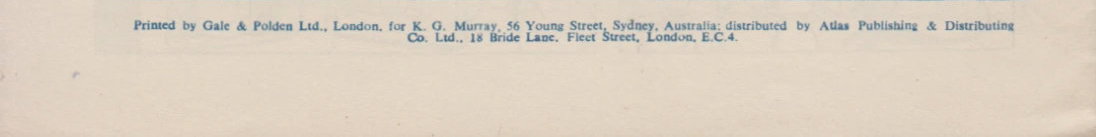 Printed by Gale & Polden Ltd., London, for K. G. Murray, 56 Young Street, Sydney, Australia; distributed by Atlas Publishing & Distributing Co. Ltd., 18 Bride Lane, Fleet Street, London, E.C.4.