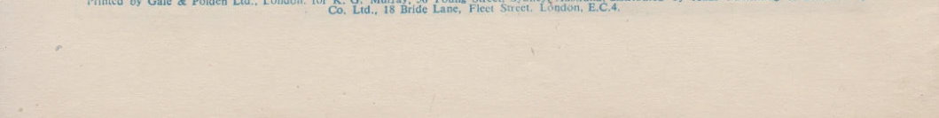 Printed by Gale & Polden Ltd., London, for K. G. Murray, 56 Young Street, Sydney, Austrtalia; distributed by Atlas Publishing and Distributing Co. Ltd., 18 Bride Lane, Fleet Street, London, E.C.4.