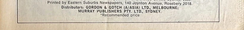 Published by Murray Publishers Pty. Ltd., 142 Clarence Street, Sydney, 2000. Printed by Eastern Suburbs Newspapers, 140 Joynton Avenue, Rosebery, 2018. Distributors: Gordon & Gotch (A/asia) Ltd., Melbourne; Murray Publishers Pty. Ltd., Sydney.