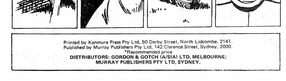 Printed by Kenmure Press Pty Ltd, 50 Derby Street, North Lidcombe, 2141. Published by Murray Publishers Pty Ltd, 142 Clarence Street, Sydney, 2000. Distributors: Gordon & Gotch (A/sia) Ltd, Melbourne; Murray Publishers Pty Ltd, Sydney.