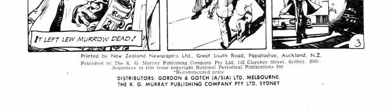 Printed by New Zealand Newspapers Ltd., Great South Road, Papatoetoe, Auckland, N.Z. Published by The K. G. Murray Publishing Company Pty Ltd, 142 Clarence Street, Sdyney, 2000. Sequences in this issue copyright National Periodical Publications Inc. Distributors: Gordon & Gotch (A/sia) Ltd, Melbourne, The K. G. Murray Publishing Company Pty Ltd, Sydney.