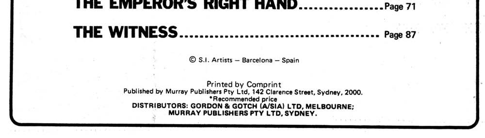 This comic was classifed as unrestricted in the Government Gazette of the State of New South Wales (Sydney), Friday 27 April 1979 (#57).