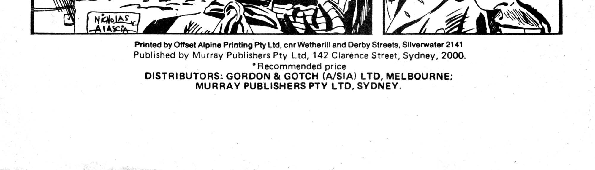 Printed by Offset Alpine Printing Pty Ltd, cnr Wetherill and Derby Streets, Silverwater 2141. Published by Murray Publishers Pty Ltd, 142 Clarence Street, Sydney, 2000. Distributors: Gordon & Gotch (a/sia) Ltd, Melbourne; Murray Publishers Pty Ltd, Sydney.