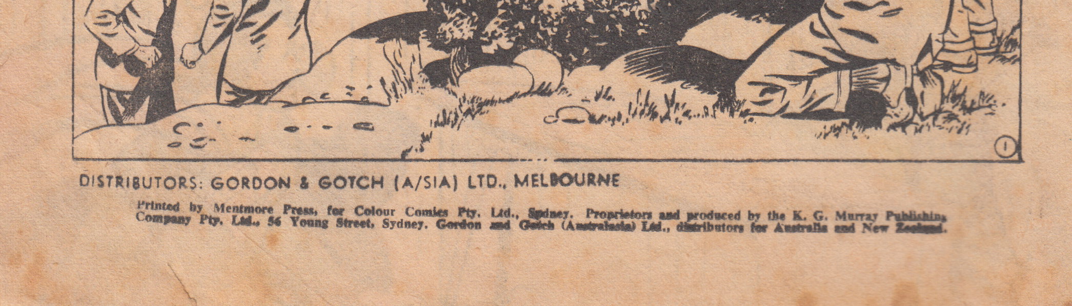 Printed by Mentmore Press, for Colour Comics Pty. Ltd., Sydney. Proprietors and produced by the K. G. Murray Publishing Company Pty. Ltd., 56 Young Street, Sydney. Gordon and Gotch (Australasia) Ltd., distributors for Australia and New Zealand.
