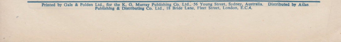 Printed by Gale & Polden Ltd., for the K. G. Murray Publishing Co. Ltd., 56 Young Street, Sydney, Australia. Distributed by Atlas Publishing & Distributing Co. Ltd., 18 Bride Lane, Fleet Street, London, E.C.4.