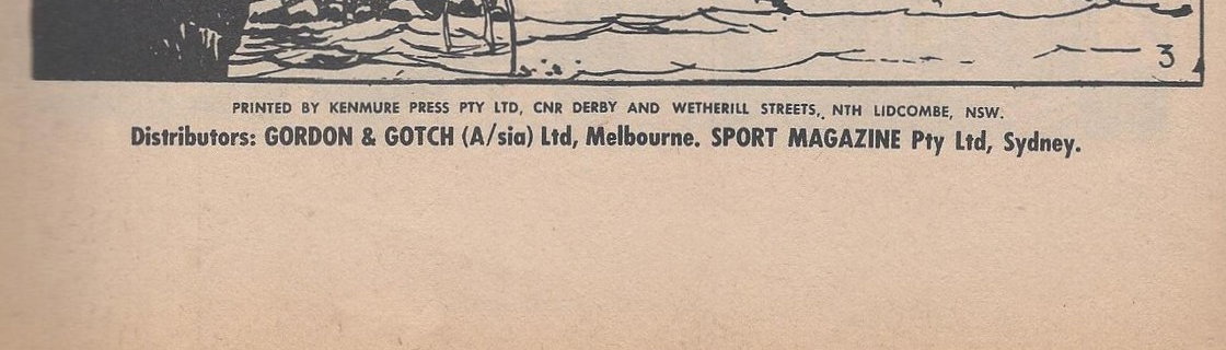 Printed by Kenmure Press Pty Ltd, Cnr Derby and Wetherill Streets, Nth. Lidcombe, NSW for the proprietors Sport Magazine Pty Ltd, 142 Clarence Street, Sydney. Gordon & Gotch (A/sia) Ltd, distributors for Australia and New Zealand.