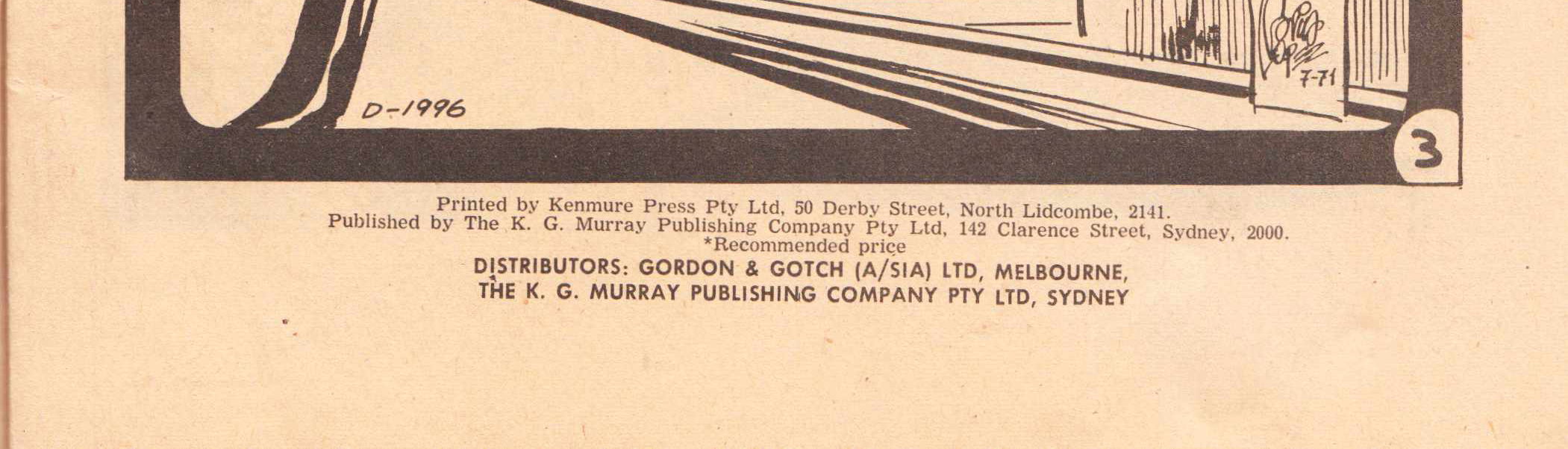 Printed by Kenmure Press Pty Ltd, 50 Derby Street, North Lidcombe, 2141. Published by The K. G. Murray Publishing Company Pty Ltd, 142 Clarence Street, Sydney, 2000. Distributors: Gordon & Gotch (A/sia) Ltd, Melbourne, The K. G. Murray Publishing Company Pty Ltd, Sydney.