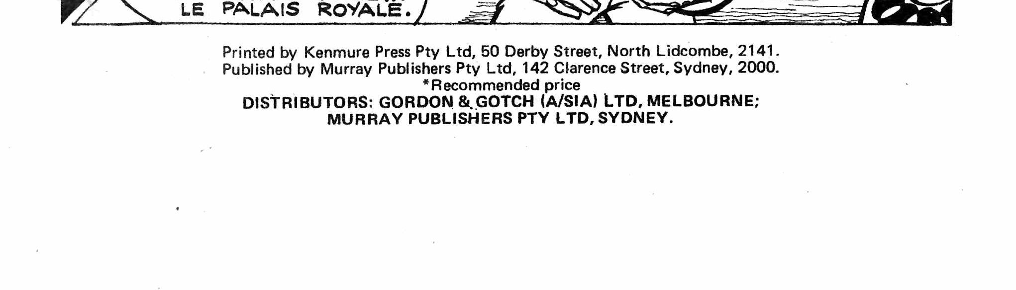 Printed by Kenmure Press Pty Ltd, 50 Derby Street, North Lidcombe, 2141. Published by Murray Publishers Pty Ltd, 142 Clarence Street, Sydney, 2000. Distributors: Gordon & Gotch (A/sia) Ltd, Melbourne; Murray Publishers Pty Ltd, Sydney.