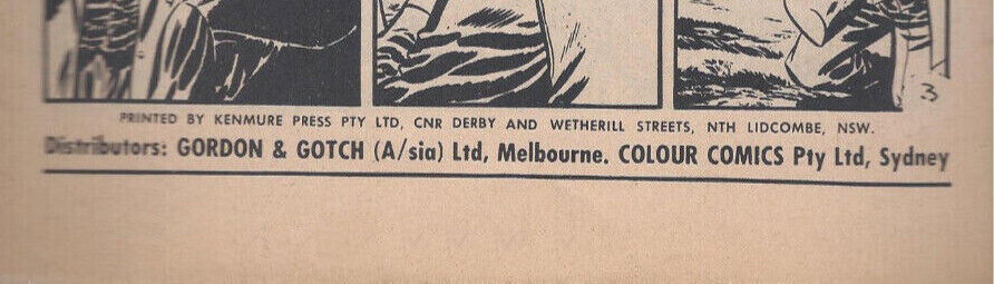 Printed by Kenmure Press Pty Ltd, cnr Derby and Wetherill Streets Nth Lidcombe, NSW, for the Proprietors Colour Comics Pty Ltd. Sydney, and produced by The K. G. Murray Publishing Company Pty Ltd, 142 Clarence Street, Sydney. Gordon & Gotch (A/sia) Ltd, distributors for Australia and New Zealand. Sequences in this issue Copyright National Periodical Publications Inc.