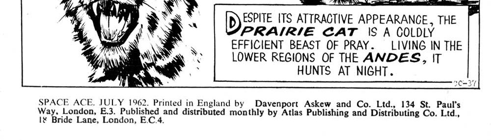 SPACE ACE. July 1962. Printed in England by Davenport Askew & Co., Ltd., 134 St. Paul's Way, London, E.3. Published and distributed monthly by Atlas Publishing and Distribution Co., Ltd., 18 Bride Lane, London, E.C.4.