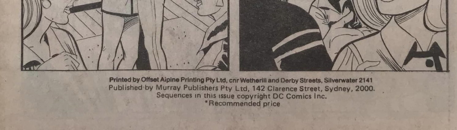 Printed by Offset Alpine Printing Pty. Ltd, cnr Wetherill and Derby Streets, Silverwater 2141. Published by Murray Publishers Pty Ltd, 142 Clarence Street, Sydney, 2000. Sequences in this issue copyright DC Comics inc.
