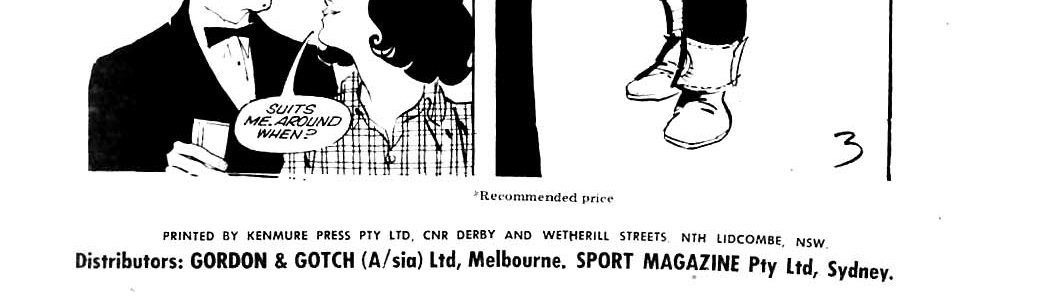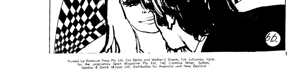 Printed by Kenmure Press Pty Ltd, Cnr Derby and Wetherill Streets, Nth Lidcombe, NSW, for the proprietors Sport Magazine Pty Ltd, 142 Clarence Street, Sydney. Gordon & Gotch (A/sia) Ltd, distributors for Australia and New Zealand.