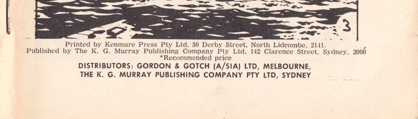 Printed by Kenmure Press Pty Ltd, 50 Derby Street, North Lidcombe, 2141. Published by The K. G. Murray Publishing Company Pty Ltd, 142 Clarence Street, Sydney, 2000. Distributors: Gordon & Gotch (A/sia) Ltd, Melbourne; The K. G. Murray Publishing Company Pty Ltd, Sydney