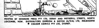 for the Proprietors Colour Comics Pty Ltd, Sydney, and produced by The K. G. Murray Publishing Company Pty Ltd, 142 Clarence Street, Sydney. Gordon & Gotch (A/sia) Ltd, distributors for Australia and New Zealand. Sequences in this issue Copyright National Periodical Publications Inc.