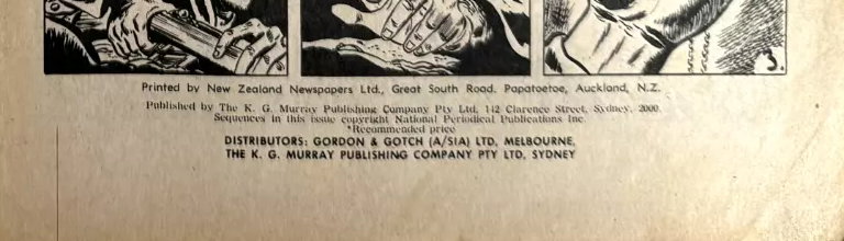 Printed by New Zealand Newspapers Ltd., Great South Road, Papatoetoe, Auckland, N.Z. Published by The K. G. Murray Publishing Company Pty. Ltd., 142 Clarence Street, Sydney, 2000. Sequences in this issue copyright National Periodical Publications Inc. Distributors: Gordon & Gotch (A/sia) Ltd, Melbourne, The K. G. Murray Publishing Company Pty ltd, Sydney.