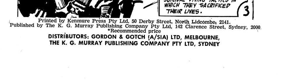 Printed by Kenmure Press Pty Ltd, 50 Derby Street, North Lidcombe, 2141. Published by The K. G. Murray Publishing Company Pty Ltd, 142 Clarence Street, Sydney, 2000. Distributors: Gordon & Gotch (A/sia) Ltd, Melbourne, The K. G. Murray Publishing Company Pty Ltd, Sydney.