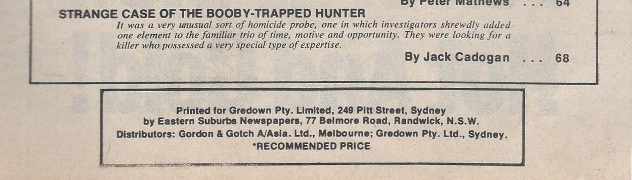 Printed for Gredown Pty. Limited, 249 Pitt Street, Sydney by Eastern Suburbs Newspapers, 77 Belmore Road, Randwick, N.S.W. Distributors: Gordon & Gotch A/Asia. Ltd., Melbourne; Gredown Pty. Ltd., Sydney.
