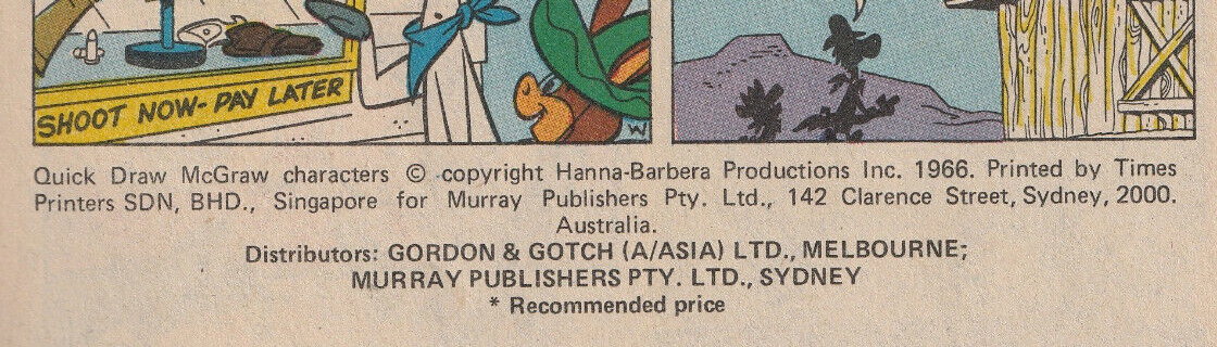 Quick Draw McGraw characters © copyright Hanna-Barbera Productions Inc. 1966. Printed by Times Printers SDN, BHD., Singapore for Murray Publishers Pty. Ltd., 142 Clarence Street, Sydney, 2000, Australia. Distributors: Gordon & Gotch (A/asia) Ltd., Melbourne; Murray Publishers Pty. Ltd., Sydney.