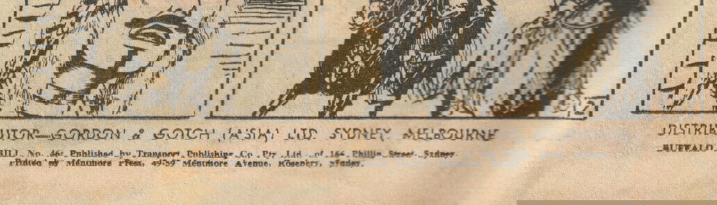 Buffalo Bill No. 46: Published by Transport Publishing Co. Pty. Ltd., of 166 Phillip Street, Sydney. Printed by Mentmore Press, 49-59 Mentmore avenue, Rosebery, Sydney. Distributor--Gordon & Gotch (A'sia) Ltd. Sydney, Melbourne.