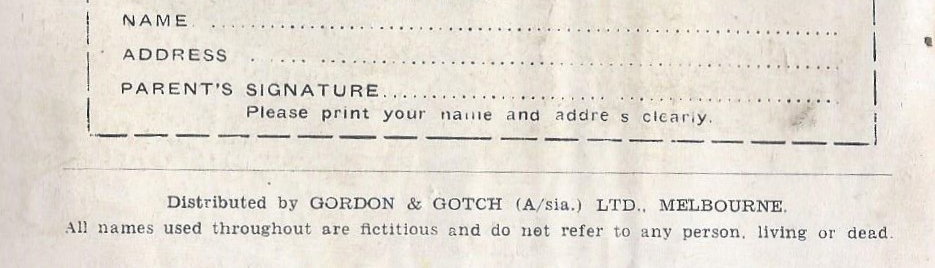 Drawn and printed in Australia by Jayar Studios and Invincible Press, Sydney, for the publishers, Barmor Publications Pty. Ltd., 81-83 Walker St., North Sydney. Distributed by Gordon & Gotch (A/sia) Ltd., Melbourne.