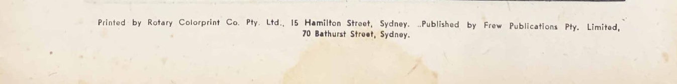 Printed by Rotary Colorprint Co. Pty. Ltd., 18 Hamilton Street, Sydney. Published by Frew Publications Pty. Limited, 70 Bathurst Street, Sydney.