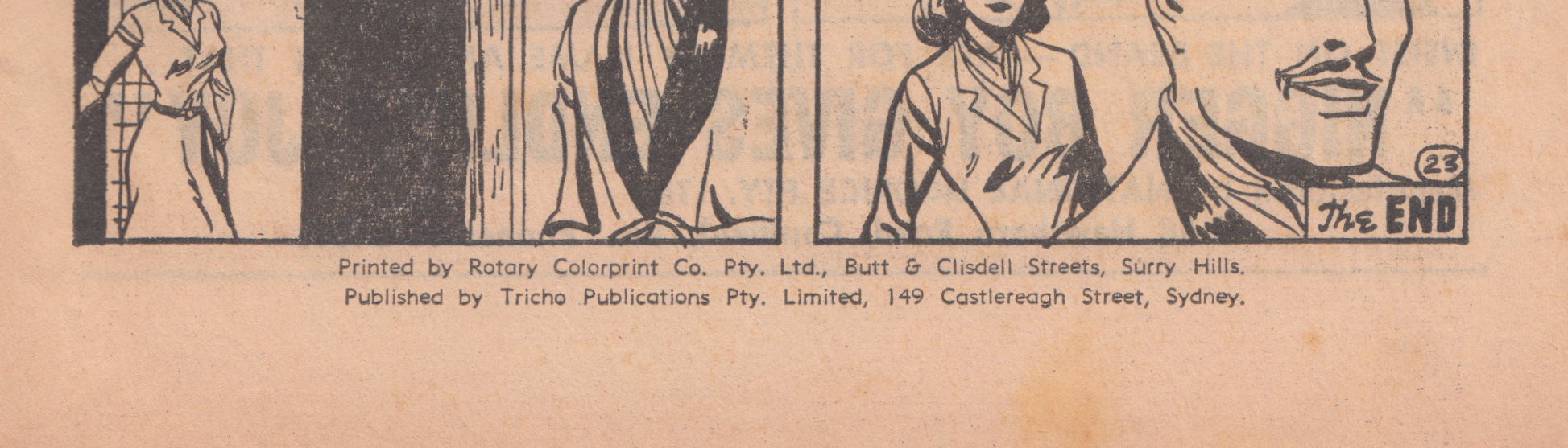 Printed by Rotary Colorprint Co. Pty. Ltd., Butt & Clisdell Streets, Surry Hills. Published by Tricho Publications Pty Limited, 149 Castlereagh Street, Sydney.