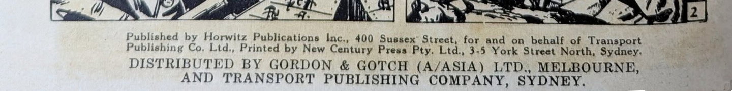 Published by Horwitz Publications Inc., 400 Sussex Street, for and on behalf of Transport Publishing Co. Ltd., Printed by New Century Press Pty. Ltd., 3-5 York Street North, Sydney. Distributed by Gordon & Gotch (A/asia) Ltd., Melbourne, and Transport Publishing Company, Sydney.