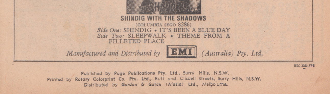 Published by Page Publications Pty. Ltd., Surry Hills, N.S.W. Printed by Rotary Colorprint Co. Pty. Ltd., Butt and Clisdell Streets, Surry Hills, N.S.W. Distributed by Gordon & Gotch (A'asia) Ltd., Melbourne.