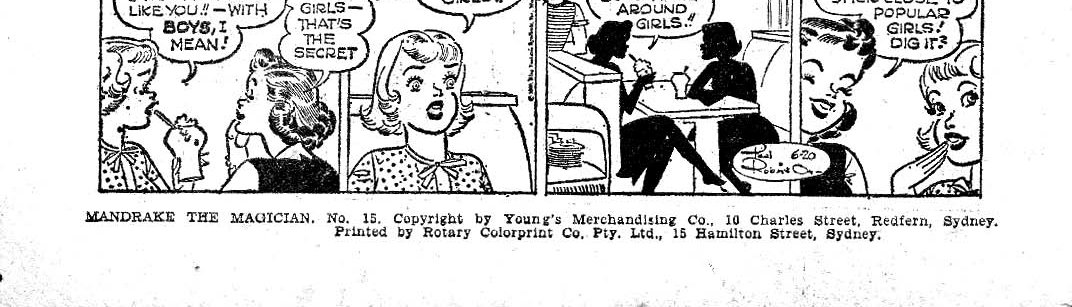 Mandrake the Magician, No. 15. Copyright by Young's Merchandising Co., 10 Charles Street, Redfern, Sydney. Printed by Rotary Colorprint Co. Pty. Ltd., 15 Hamilton Street, Sydney.