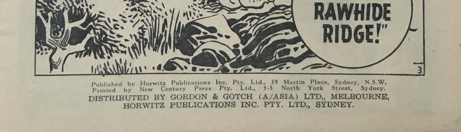 Some dialogue in this issue has been changed to be less colloquial. For example, in the first story 'There ain't nothin' they can do' is changed to 'There's nothing they can do' and 'Vamoose, hombre!' is changed to 'Listen hombre!' In the third story 'I don't need nothin' from nobody' is changed to 'I don't need any advice'.
