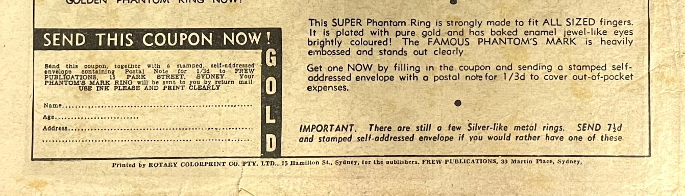 Printed by Rotary Colorprint Co. Pty. Ltd., 15 Hamilton St., Sydney, for the publishers, Frew Publications, 39 Martin Place, Sydney.